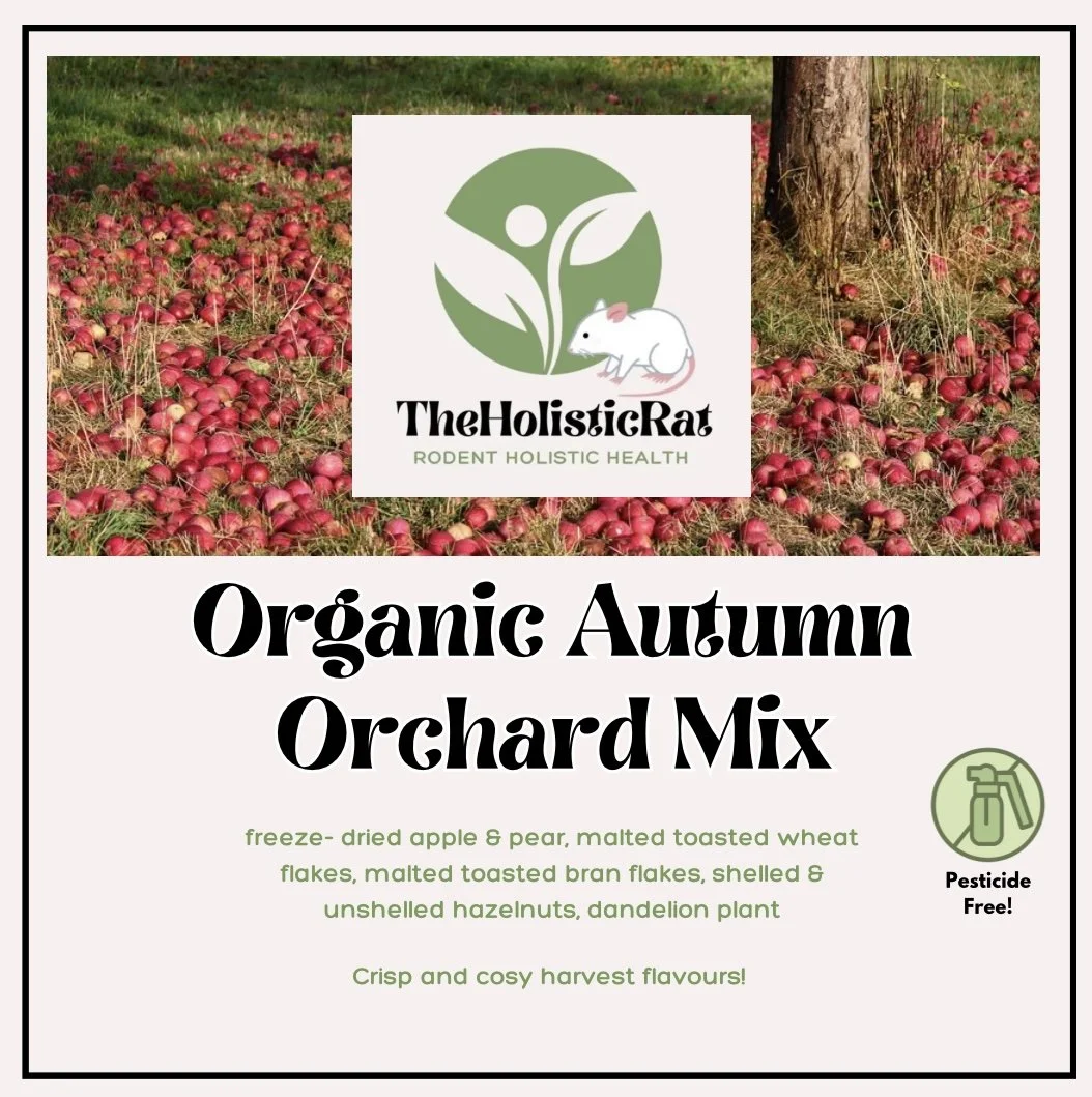 At The Holistic Rat, we specialize in crafting organic, all-natural nutrition for pet rats, with a focus on health, longevity, and species-appropriate ingredients. Our products are designed to support optimal wellbeing — from scatter feeds that encourage natural foraging behaviour to seasonal snacks that aid digestion, immunity, urinary health and natural foraging instincts . Rats thrive on variety, whole foods, and clean ingredients, which is why we never use fillers, artificial additives, or synthetic supplements. Every blend is formulated with care, backed by nutritional research, and made in eco-conscious packaging — because a healthy mischief starts with honest, holistic food. We encourage an enriching, stress-free environment where your pet can thrive naturally. It’s an approach that values the intricate connections between diet, environment and mental health, ensuring your mischief lives a long, happy and vibrant life.
